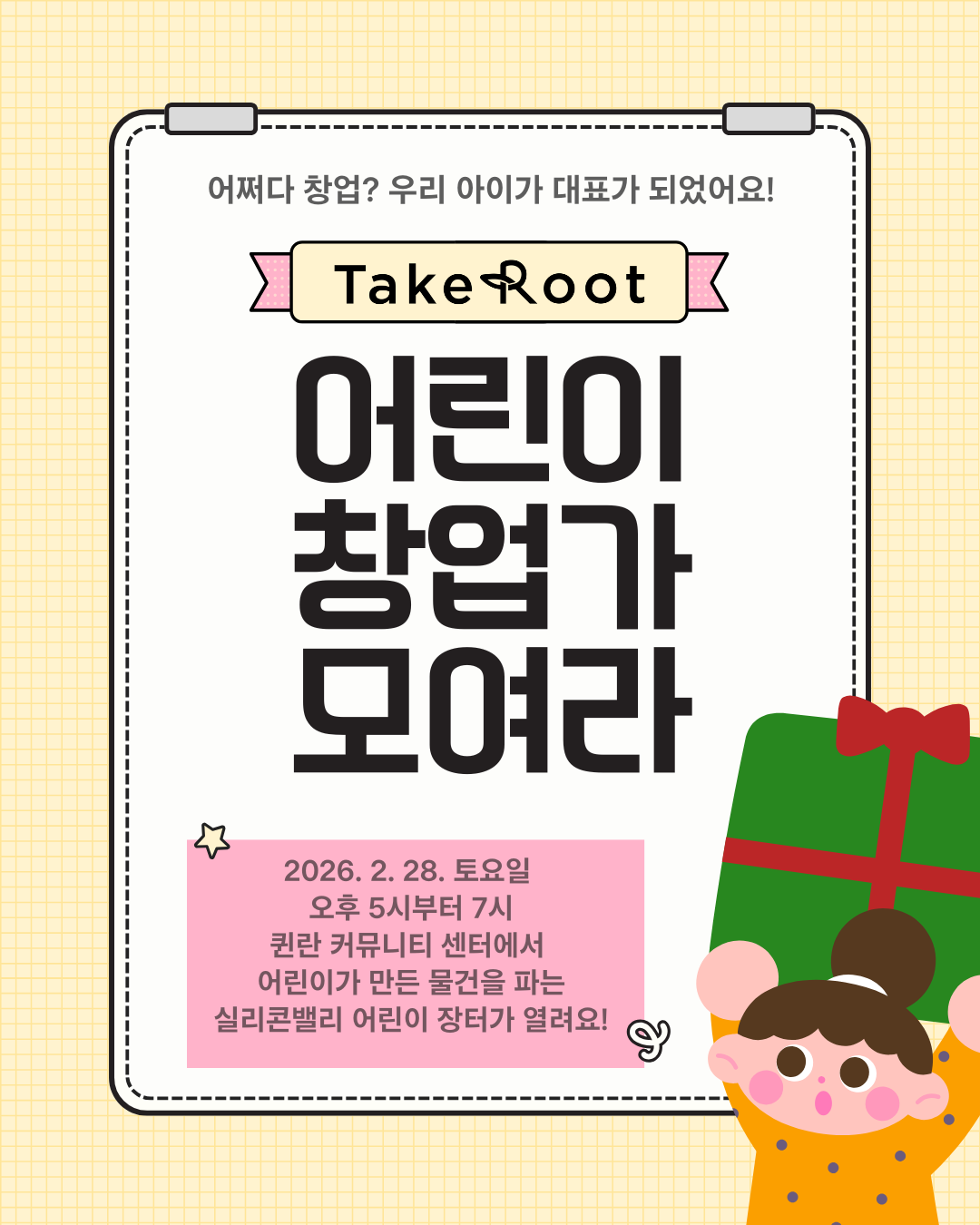 사진 설명: 2/28/2026 <테이크루트 어린이장터> 안내문