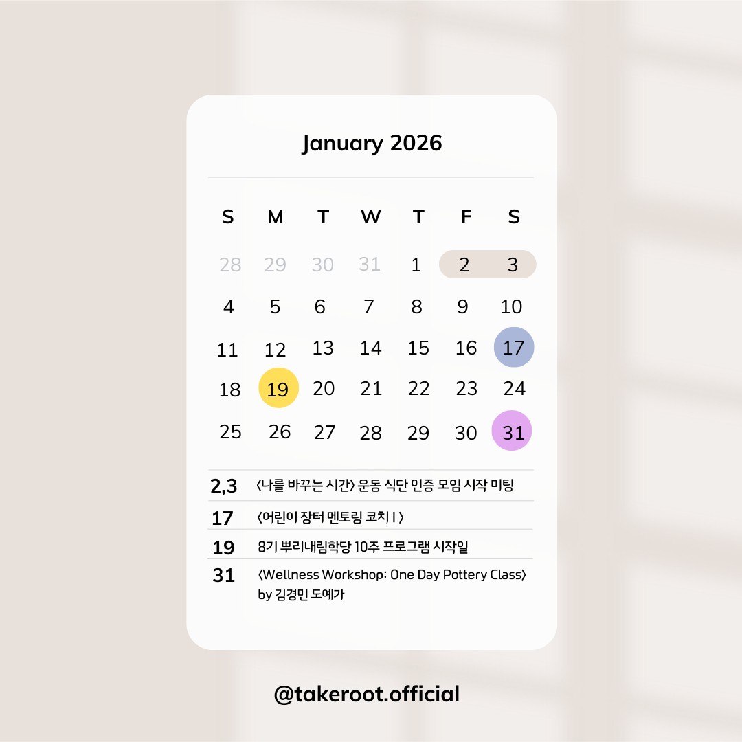 ✔️날짜: 2026년 1월 5일 월요일부터 1월 31일 수요일까지